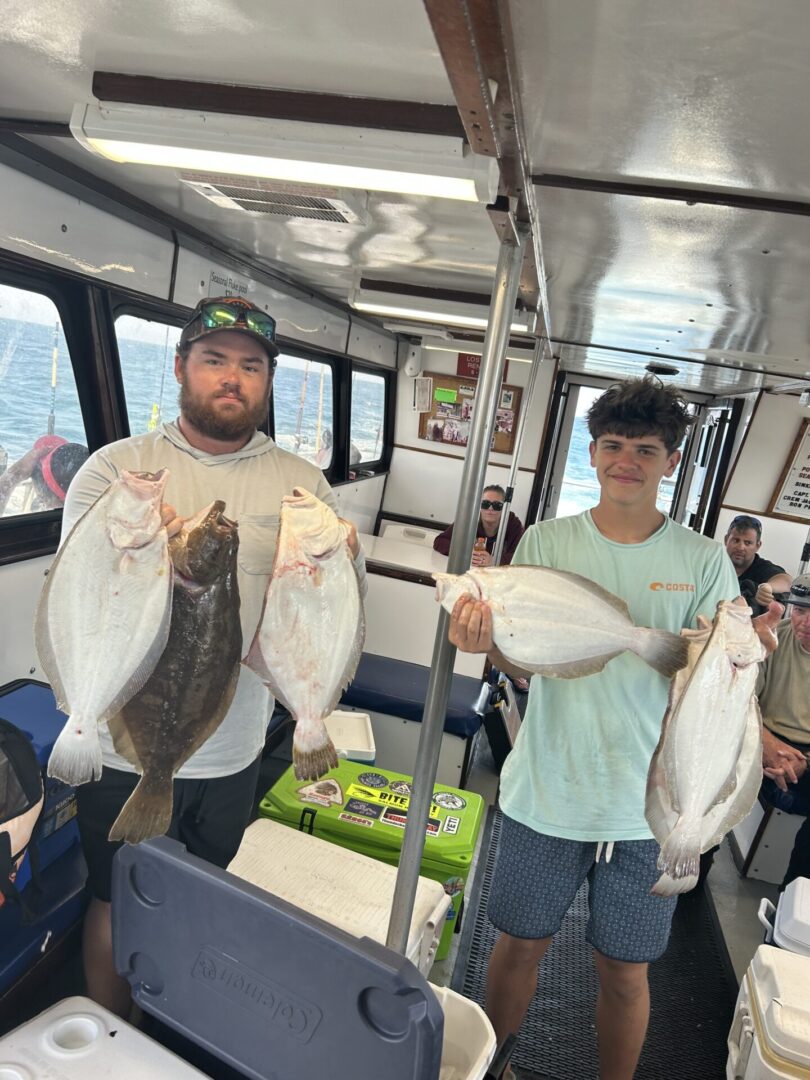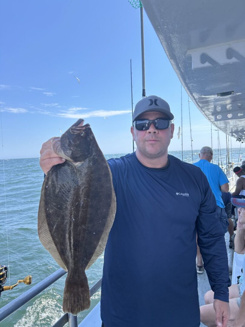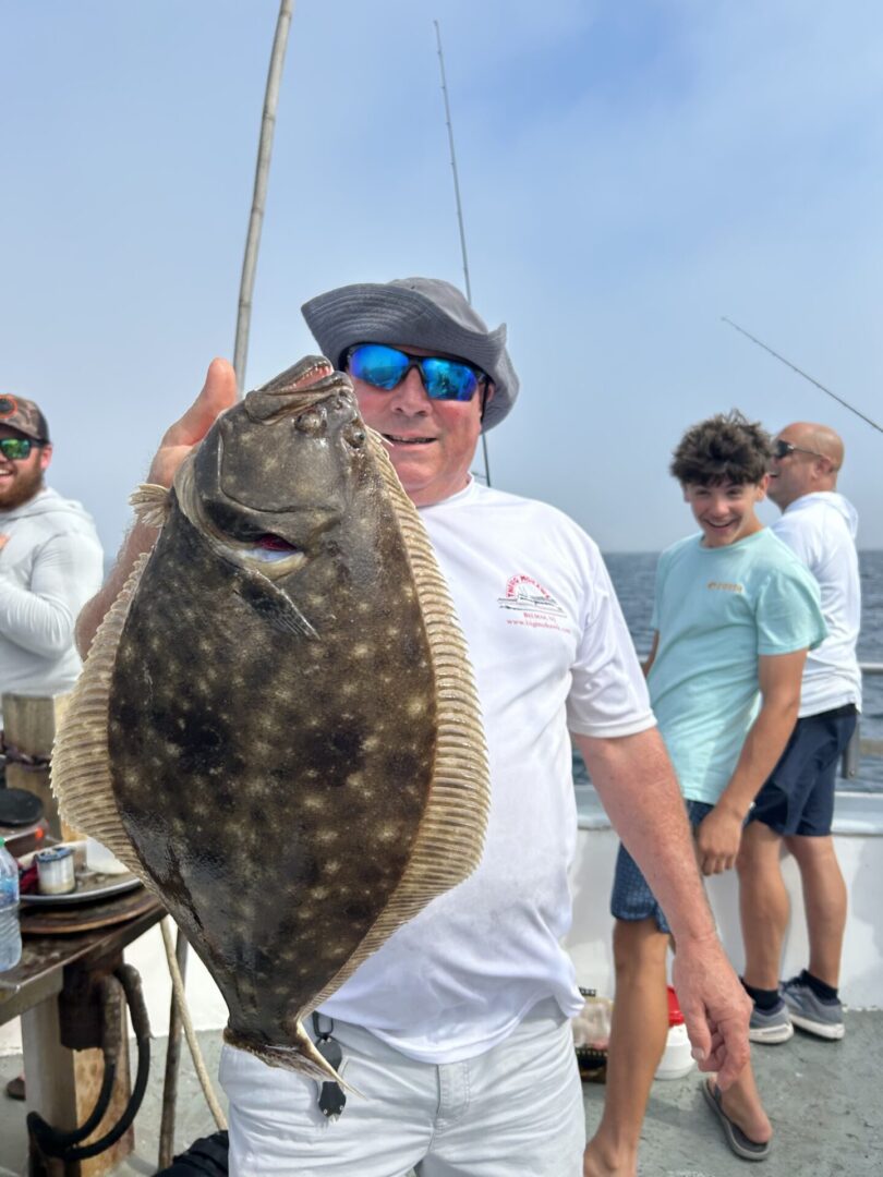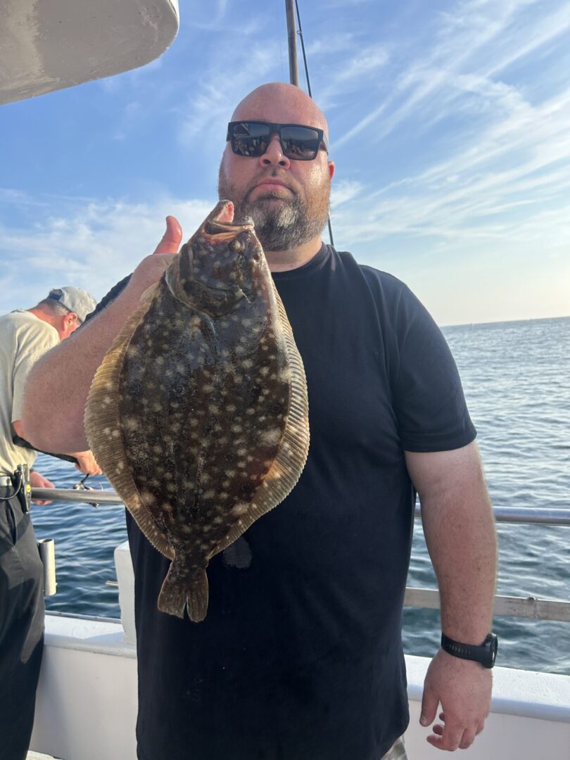 Back out on the fluke grounds today. Had some decent life to start this morning a few nice shots of keepers and some good short life. Didn’t last long South wind came up quick and strong conditions got pretty Dusty. We took a ride to a different area where life was much better but keepers were hard to come by drifting over a kt we managed a few more but overall had to work for em. High hook had 7k orl and A few anglers managed a limit with some others just shy. Thanks for fish hard guys wasn’t easy after the am. We will be back at it tomorow weather looks great book online or come on down walk ons welcome.