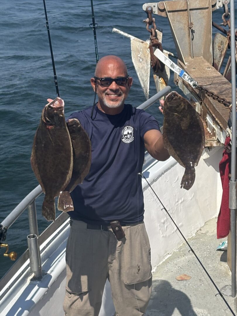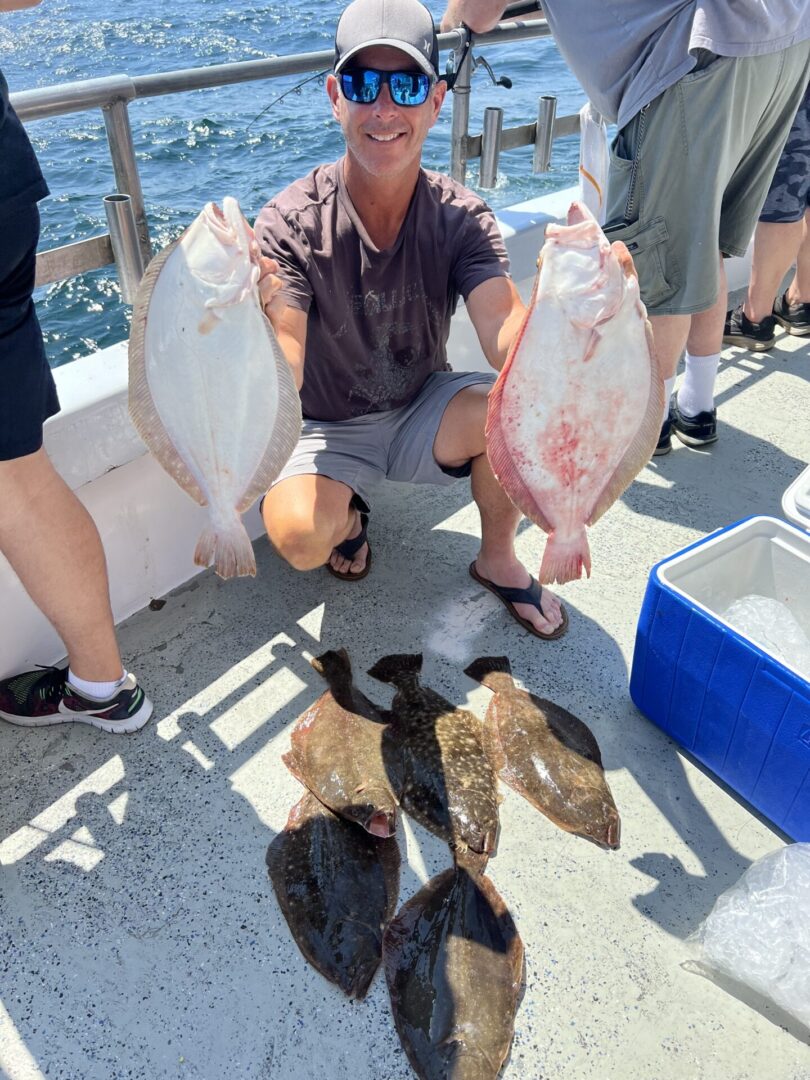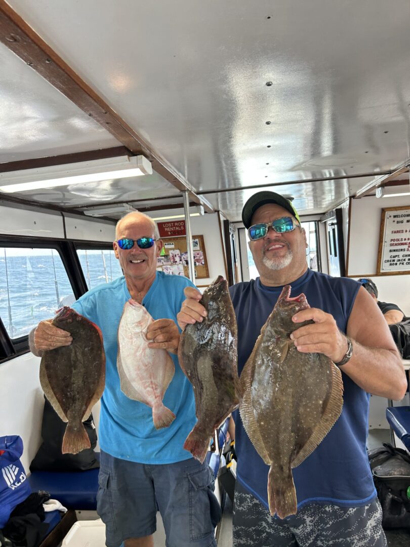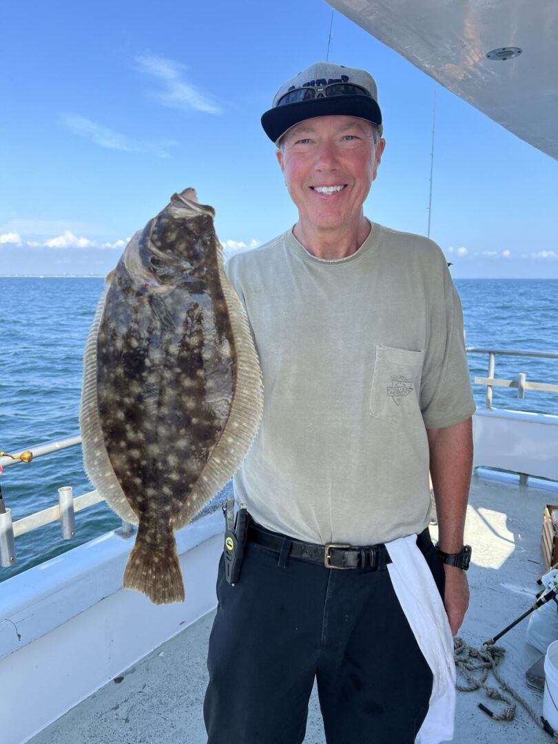 Back out on the fluke grounds today. Had some decent life to start this morning a few nice shots of keepers and some good short life. Didn’t last long South wind came up quick and strong conditions got pretty Dusty. We took a ride to a different area where life was much better but keepers were hard to come by drifting over a kt we managed a few more but overall had to work for em. High hook had 7k orl and A few anglers managed a limit with some others just shy. Thanks for fish hard guys wasn’t easy after the am. We will be back at it tomorow weather looks great book online or come on down walk ons welcome.