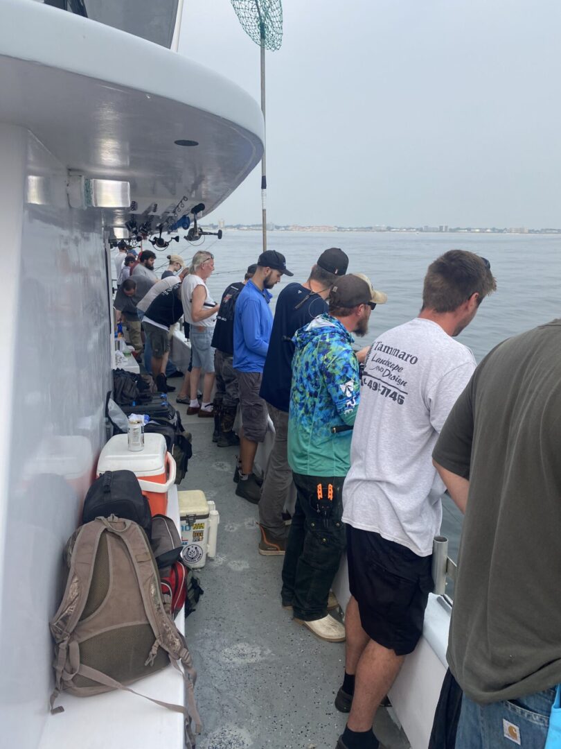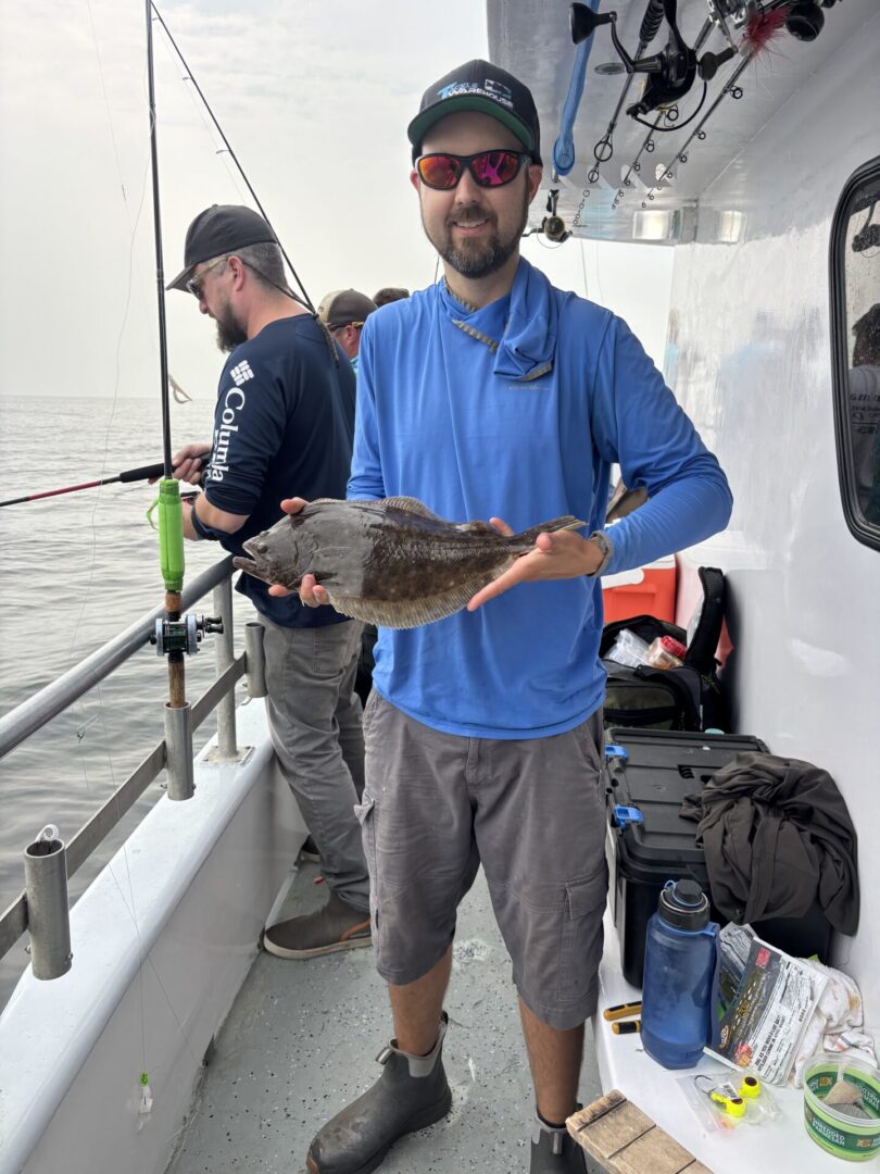 Beautiful day on the fluke grounds today. Almost A little too nice. Despite funky drift conditions we had lots of life today picked away at keepers with good short life at times and some nice quality in the mix. Lack of conditions made it tough had to stay on the throttles and keep the boat moving along anglers casting around with spinning rods did best today. Had limits around the boat with some others just shy and some nice Seabass in the mix. We are chartered tomorow and Friday back to open boat Saturday stay tuned.